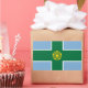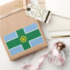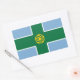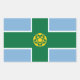 Sticker with design with a flag of historic county of Derbyshire, in England, Great Britain; blue flag with a green cross and a gold Tudor rose in the centre