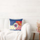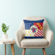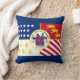 Throw pillow with flag of city of Detroit, Michigan; red, white and blue flag with stars and stripes, fleur-de-lys, dragons and seal of the city