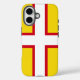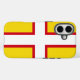 iPhone 14 with design with a flag of historic county of Dorset, in England, Great Britain; yellow flag with a white cross with a red border