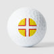 Golf Ball with design with a flag of historic county of Dorset, in England, Great Britain; yellow flag with a white cross with a red border