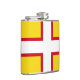 Vinyl wrapped flask with design with a flag of historic county of Dorset, in England, Great Britain; yellow flag with a white cross with a red border