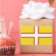 Sticker with design with a flag of historic county of Dorset, in England, Great Britain; yellow flag with a white cross with a red border