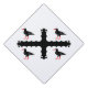 Graduatipn Cap Topper with design with a flag of historic county of Flint, in Wales, Great Britain; white flag with a black engrailed fleury cross and four choughs