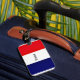 Pleasantly surprised at the quality of the luggage tag. It was exactly as shown and my daughter will be pleased. The address label on the back of the luggage tag was neat and clear.