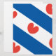 Flag of Friesland, a province in The Netherlands. It consists of blue and white diagonal stripes; in the white stripes are red pompeblêden, leaves of the yellow water-lily, that may remind one of hearts, but according to the official instructions "should not be heart-shaped".