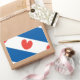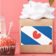 Flag of Friesland, a province in The Netherlands. It consists of blue and white diagonal stripes; in the white stripes are red pompeblêden, leaves of the yellow water-lily, that may remind one of hearts, but according to the official instructions "should not be heart-shaped".