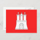 Postcard with flag of Hamburg, red flag with illustration of a white castle with three towers