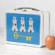 Metal Lunchbox with design with flag of Havana, capital city of Cuba, blue flag with three castles and golden key