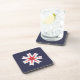 Coaster with a design with the flag of Hokkaido Prefecture in Japan (北海道 , Hokkaidō), a blue flag with a white and red symbol