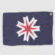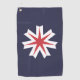 Golf Towel with a design with the flag of Hokkaido Prefecture in Japan (北海道 , Hokkaidō), a blue flag with a white and red symbol