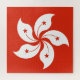 This design features the flag of Hong Kong (officially the "Hong Kong Special Administrative Region of the People's Republic of China", HKSAR), which is a metropolitan area on the eastern Pearl River Delta of the South China Sea. Hong Kong is one of the most densely populated places in the world, and it has the highest number of skyscrapers of any city; its residents have some of the highest life expectancies in the world. The flag shows a white stylised five-petal Hong Kong orchid tree (Bauhinia blakeana) flower in the centre of a red background.