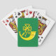 Poker playing cards with design with a flag of historic county of Huntingdon, in England, Great Britain; green flag with a gold ribboned hunting horn