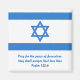 The flag of Israel in blue and white with the star of David and scripture Pray for the peace of Jerusalem: they shall prosper that love thee Psalm 122:6 Image available on various gifts and products.