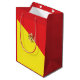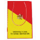 Celebrate Sicilian pride with this vibrant gift bag featuring the iconic Flag of Sicily. You can personalize the bottom front of the bag with custom wording in a tasteful, small font—perfect for birthdays, anniversaries, or special occasions.