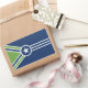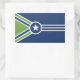 Sticker with a design with the flag of Jackson, Tennessee. A blue, green, and white flag