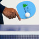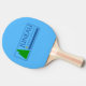 Ping pong paddle with flag of city of Juneau, Alaska; blue flag with stylized illustration of trees