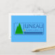 Postcard with flag of city of Juneau, Alaska; blue flag with stylized illustration of trees