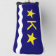 Golf putter cover design with flag of Kinshasa, capital city of Democratic Republic of Congo, blue flag with white wave, two golden stars and letter ‘K’ in the centre
