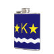 Vinyl wrapped flask with design with flag of Kinshasa, capital city of Democratic Republic of Congo, blue flag with white wave, two golden stars and letter ‘K’ in the centre