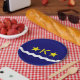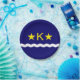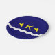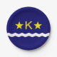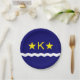 Paper Plate with design with flag of Kinshasa, capital city of Democratic Republic of Congo, blue flag with white wave, two golden stars and letter ‘K’ in the centre