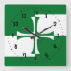 Wall Clock with design with a flag of historic county of Kirkcudbrightshire, in Scotland, Great Britain; green and white flag with cross of Cuthbert