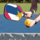 Pickleball Paddle with a design with the flag of Lafayette, Indiana.. A red, white and blue flag with a yellow star