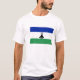 The current national flag of Lesotho, adopted on October 4, 2006, features a horizontal blue, white, and green tricolour with a black mokorotlo (a Basotho hat) in the centre. The design, introduced to honour the 40th anniversary of independence, is reportedly intended to reflect a peaceful orientation for the country The first flag of Lesotho was introduced on October 4, 1966, the day of Lesotho's full independence from the United Kingdom. It featured a prominent white mokorotlo. The blue stood for sky and rain, the white for peace, the green for land, and the red for faith. A new flag, designed by Sergeant Retšelisitsoe Matete,[3] was adopted on January 20, 1987, following a military coup which ousted the Basotho National Party after 20 years in power. A light brown traditional Basotho shield along with an assegai (lance) and knobkierie (club) replaced the Basotho hat as the primary emblem. The colour scheme and pattern changed as well, with a triangular white field standing for peace. The bottom diagonal contained a blue strip for rain and a green triangle for prosperity.