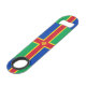 Bottle Opener with design with a flag of historic county of Lincolnshire, in England, Great Britain; green and blue flag with red and yellow cross and a Fleur-de-Lis in the centre