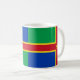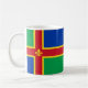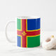 Mug with design with design with a flag of historic county of Lincolnshire, in England, Great Britain; green and blue flag with red and yellow cross and a Fleur-de-Lis in the centre