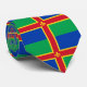 Tie with design with design with a flag of historic county of Lincolnshire, in England, Great Britain; green and blue flag with red and yellow cross and a Fleur-de-Lis in the centre