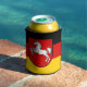 Can cooler with flag of Lower Saxony; design with horizontal tricolor of black, red and yellow (golden), with state’s emblem with an illustration of a white horse in the centre