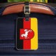 Luggage Tag with flag of Lower Saxony; design with horizontal tricolor of black, red and yellow (golden), with state’s emblem with an illustration of a white horse in the centre