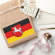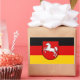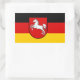 Sticker flag of Lower Saxony; design with horizontal tricolor of black, red and yellow (golden), with state’s emblem with an illustration of a white horse in the centre