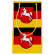 Paper bag with flag of Lower Saxony; design with horizontal tricolor of black, red and yellow (golden), with state’s emblem with an illustration of a white horse in the centre