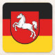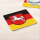 Paper coaster with flag of Lower Saxony; design with horizontal tricolor of black, red and yellow (golden), with state’s emblem with an illustration of a white horse in the centre