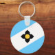 Button Keychain with flag of city of Madison, Wisconsin; light blue and white flag with a black cross and yellow circle in the centre
