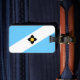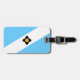 Luggage Tag with flag of city of Madison, Wisconsin; light blue and white flag with a black cross and yellow circle in the centre