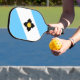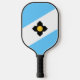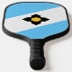 Pickleball Paddle with flag of city of Madison, Wisconsin; light blue and white flag with a black cross and yellow circle in the centre