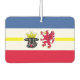 Air Freshener with variant flag of Mecklenburg-Western Pomerania; design with five horizontal stripes of red, white, blue and yellow, and with illustrations of bull’s head and red eagle