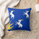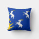 Throw pillow with design with a flag of historic county of Merioneth, in Wales, Great Britain; blue azure flag with three white goats and yellow sun