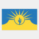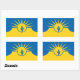 Sticker with flag of city Mesa, Arizona; yellow and blue flag with stylized illustrations of desert, cactus and rising sun