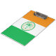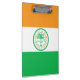 Clipboard with flag of city of Miami, Florida; flag with three horizontal bands of orange, white and green with emblem with an illustration of a palm tree in the centre
