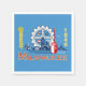 Paper napkin with flag of city of Milwaukee, Wisconsin; light blue flag with city panorama