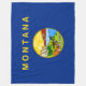 This design features the state flag of Montana, which is a state in the Northwestern United States. The western half of Montana contains numerous mountain ranges. Smaller mountain ranges are found throughout the state. In all, 77 named ranges are part of the Rocky Mountains. The eastern half of Montana is characterized by western prairie terrain and badlands. Montana is bordered by Idaho to the west, Wyoming to the south, North Dakota and South Dakota to the east and the Canadian provinces of British Columbia, Alberta and Saskatchewan to the north. Montana has several unofficial nicknames, such as "Big Sky Country" and "The Treasure State", and slogans that include "Land of the Shining Mountains" and "The Last Best Place". The state motto of Montana is "Oro y Plata", which is Spanish for "Gold and Silver". Nearly 13 million tourists annually visit Glacier National Park, Yellowstone National Park, Beartooth Highway, Flathead Lake, Big Sky Resort and other attractions in Montana. The capital city of Montana is Helena, while the largest city is Billings. Other major cities in Montana include Missoula, Great Falls, Bozeman, Butte, Kalispell, Havre, Anaconda, Miles City, Belgrave, Livingston, Laurel, Whitefish, Lewistown, Sidney, Glendive, Columbia Falls, Polson, Hamilton, Dillon, Hardin, Shelby, Glasgow, Deer Lodge, Cut Bank, Libby, Wolf Point, Conrad, Colstrip, Red Lodge, Malta and East Helena.