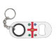Bottle Opener With Keychain with the flag of Montreal, the most populous city in the province of Quebec, Canada. A white flag with a red cross, a white pine, a blue Fleur-de-lys, a red Rose of Lancaster, a shamrock, and a thistle
