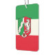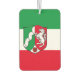 Air Freshener with variant flag of North-Rhine Westphalia (Nordrhein-Westfalens), design with horizontal tricolor of green, white and red; with a shield with illustration of river and horse in the centre
