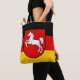 Tote bag with flag of Lower Saxony; design with horizontal tricolor of black, red and yellow (golden), with state’s emblem with an illustration of a white horse in the centre