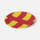 Paper plate with design with a flag of historic county of Northumberland, in England, Great Britain; red and yellow flag based on the St. Oswald banner