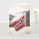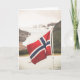 Photo of the Norwegian Flag on the back of a boat. Location: Holandsfjorden, with Engabreen, a part of Svartisven Glacier in the background.