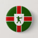 Round Button with design with a flag of historic county of Nottinghamshire, in England, Great Britain; green flag with a red cross, with inescutcheon with illustration of Robin Hood in the centre